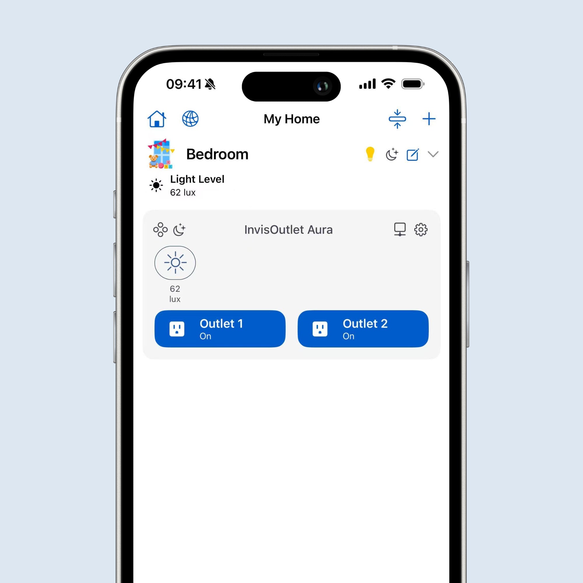 InvisOutlet Aura's embedded light sensor measures your home's real-time luminosity, then automatically adjusts the light brightness. A comfortable glow, only when needed.