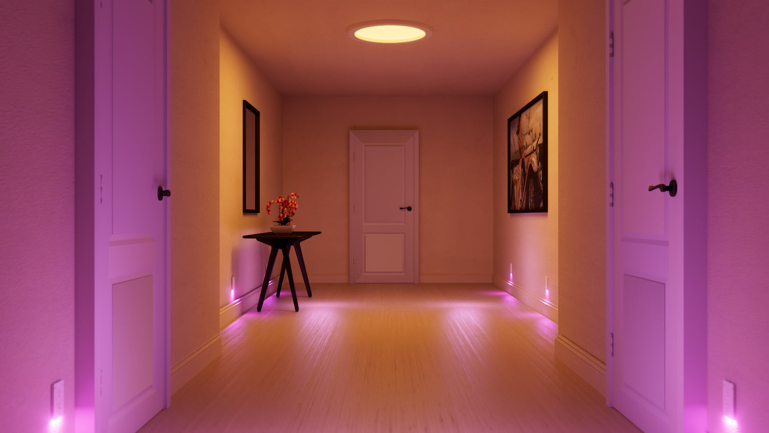For shared rooms that need aesthetic color lighting, such as a living room, we recommend at least 3 InvisOutlet Aura's, depending on the size of the space. For individual rooms, such as bedrooms, we recommend 1 or more InvisOutlet Auras depending on the availability of unobstructed outlet spaces. For hallways, the most elegant solution is to replace most if not all outlets to provide an impressive color glow throughout your home. Ultimately, it's worth taking a look throughout your house to determine how many available outlets are in each room, as well as your own lighting needs! Consider both color lighting needs as well as smart control over your appliances through InvisOutlet Aura's dual smart receptacles.