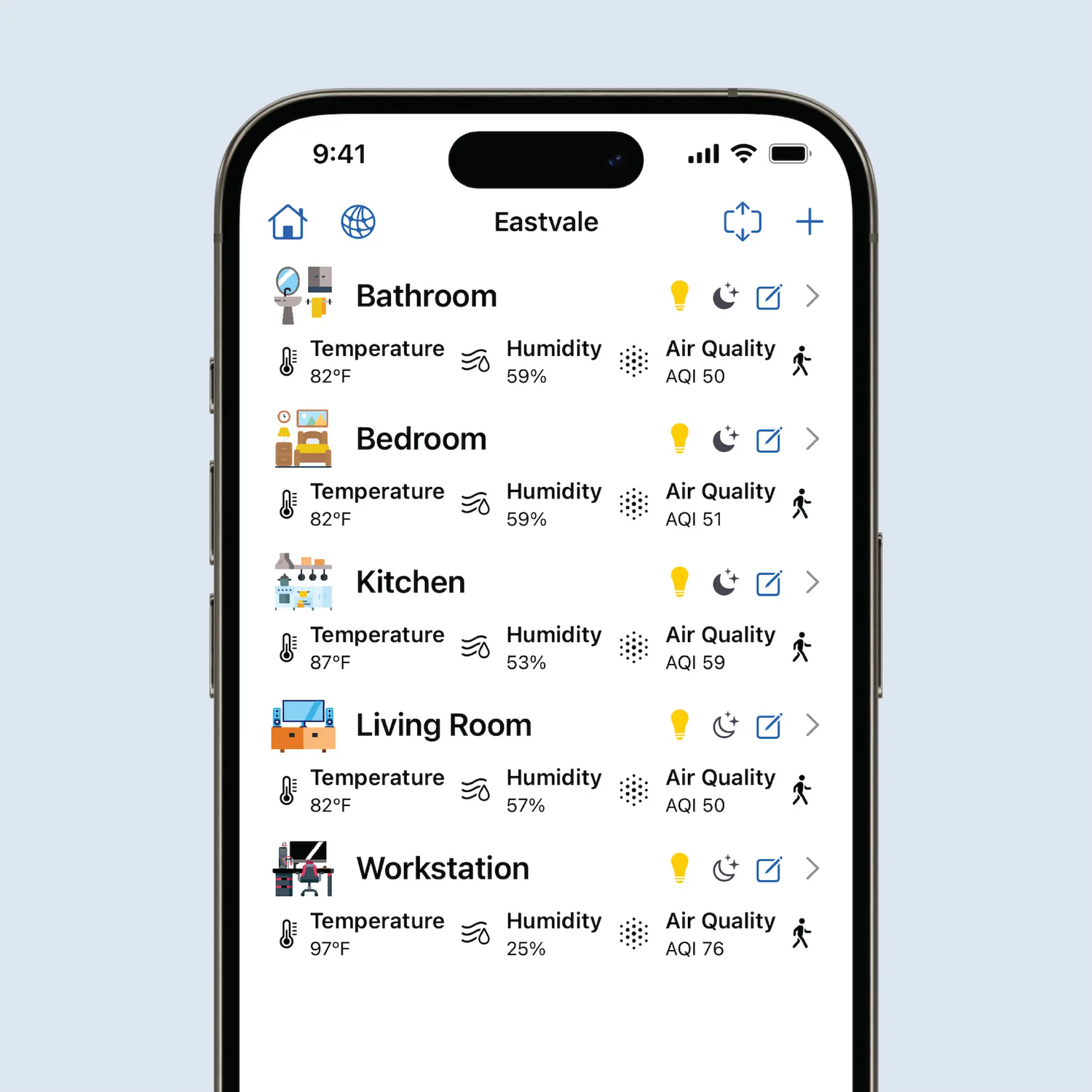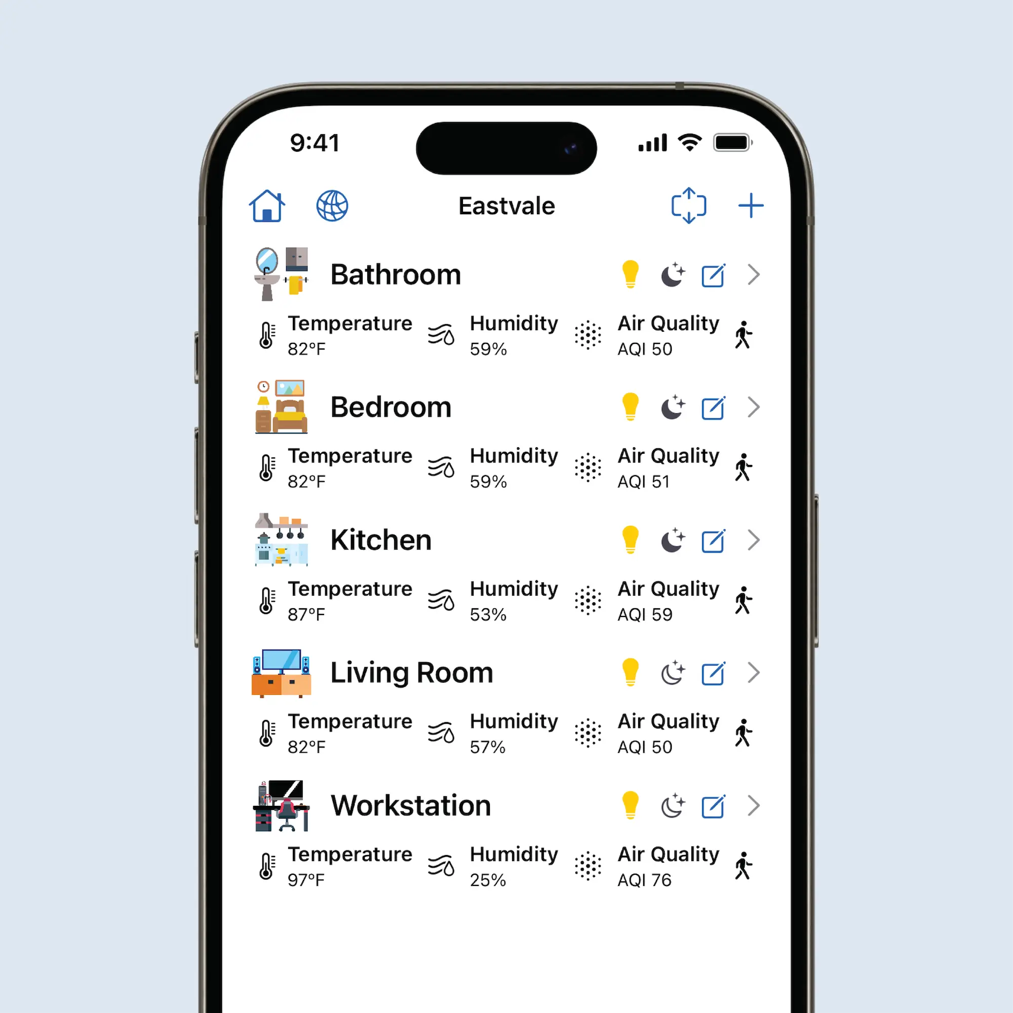 Want to view all rooms at once for a quick overview of your home? Collapse everything with a single tap and see every room’s status at a glance.